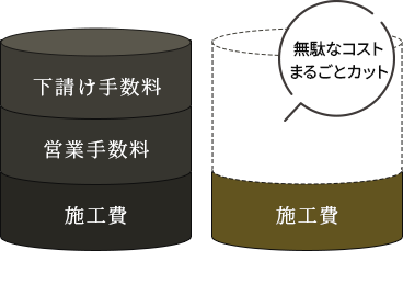 下請け業者や営業担当者を介さないため、中間マージンや手数料などの無駄な費用をカット。
