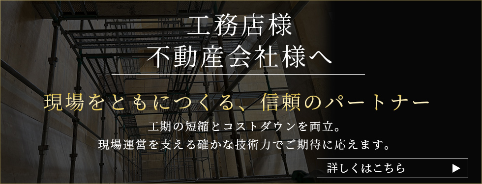 経験豊富な職人によるスピーディーかつ精度の高い施工で、工期の安定化とコスト削減を実現。管理会社様・工務店様の現場運営を、確かな技術と丁寧な対応で力強くサポートいたします。